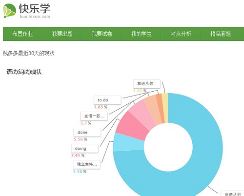 快乐学希望达到的理想状态是,老师愿意使用快乐学出题,学生用快乐学答题,老师再通过快乐学批改作业(一些题目是智能批改),最后形成完整的学生的统计报告,帮助学生精确诊断知识薄弱点,再进行针对性讲练。