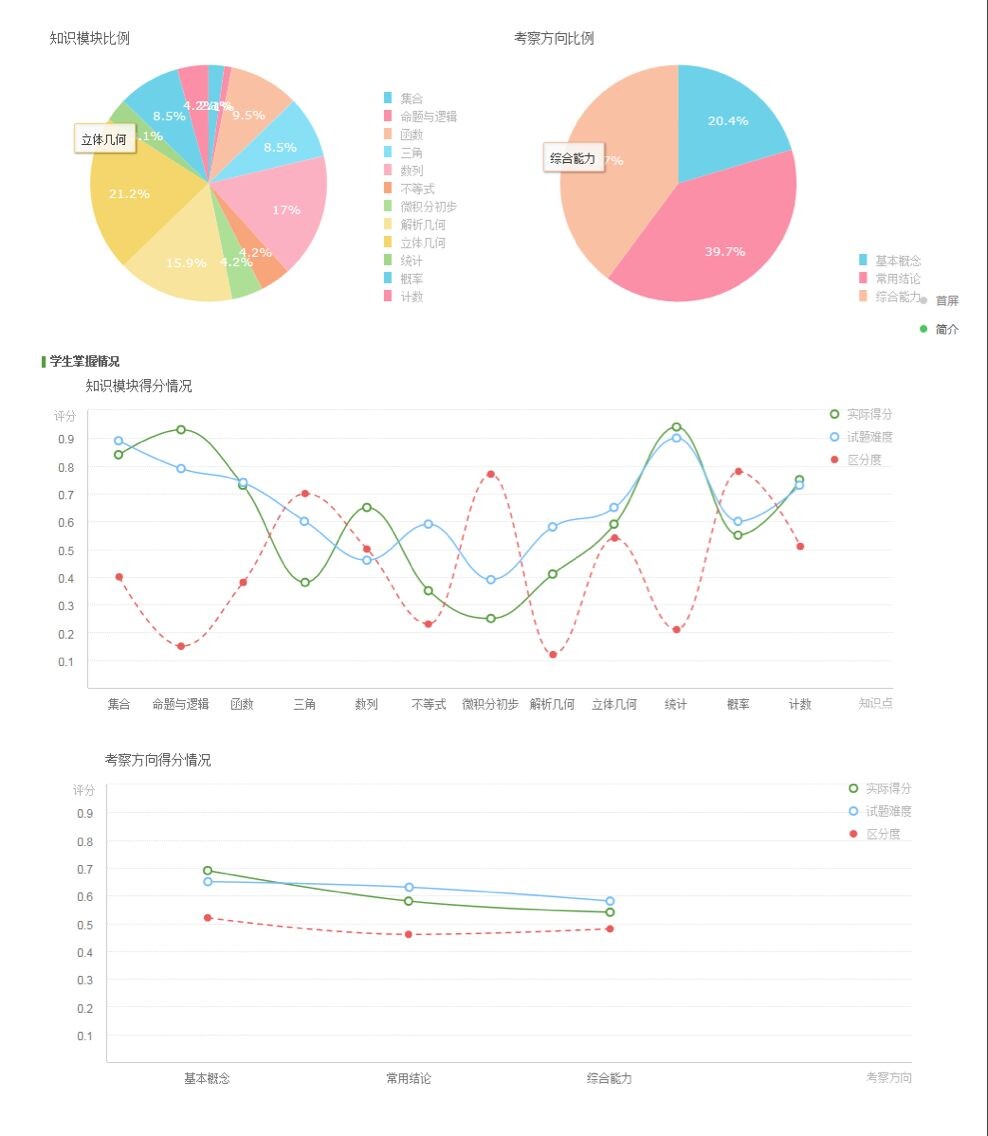 通过快乐学,老师可以调用任意知识点的题目,备课、布置作业、出题,学生交作业后,会生成分析报告,包括错误率、弱项、知识模块得分、综合能力等维度,将学生“分类”,老师再进行针对性的讲解。