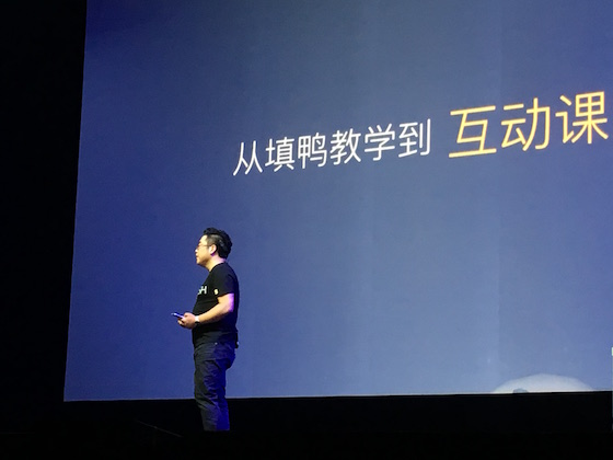 发布会现场,林书豪与场外学生连线,演示了盒子鱼的外教直播一对一课程,外教老师和学生通过盒子鱼,在移动端完成课程教学。同时,一位北大附中的老师使用盒子鱼的7.0新版本进行了演示,上课的同时,学生可以使用盒子鱼的语音打分功能,和老师互动同步进行。