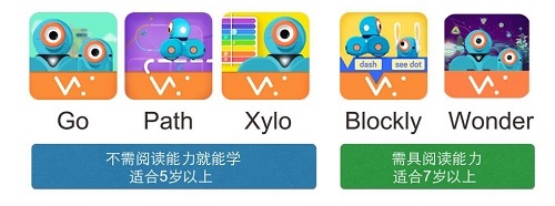 这两个APP针对7岁以上具有阅读能力的儿童,孩子可以用它们来学习计算机科学基础知识以及通过编程来控制机器人。