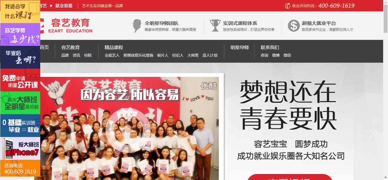 容艺教育成立于2012年,由央视主持人李霞创办并担任CEO,主要提供艺术类专业职前教育培训,所设专业包括全能艺人、娱乐营销、制片人、真人秀节目编导、经纪人、艺人助理等。