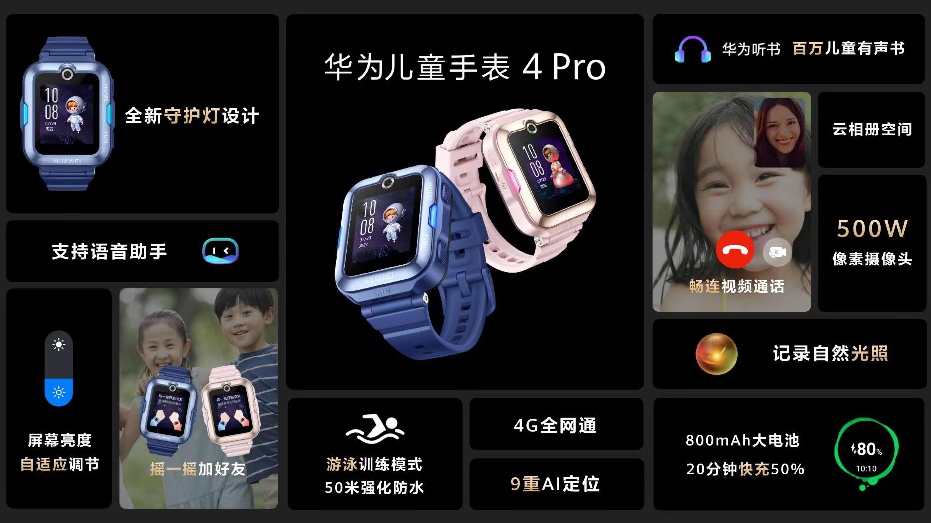 除了智慧屏,华为还推出了全新升级的儿童手表4 Pro,对此前的功能进行了不少升级。