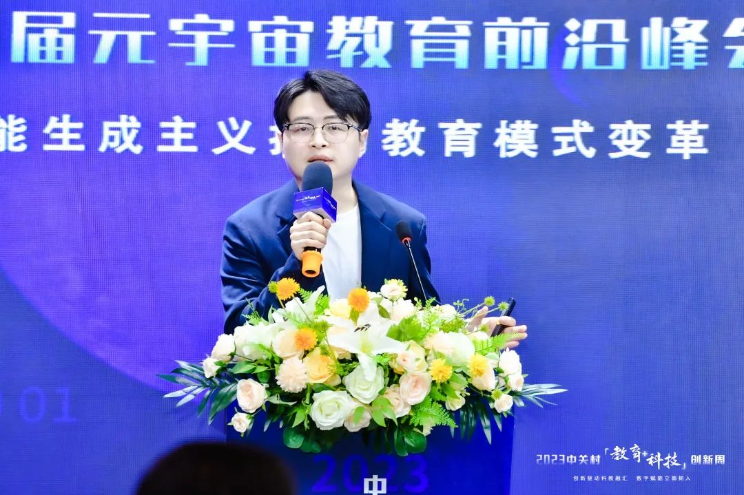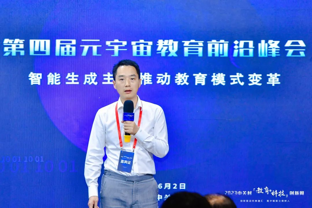 中关村科学城管理委员会规划发展处处长王春生在致辞中指出,当前我们正处于从互联网时代向人工智能时代的转变。人工智能在各个领域都展现出令人难以想象的创新力和成果。教育元宇宙作为在互联网和人工智能基础上形成的新型教育形式,已取得了一定进展。王春生认为,通过声音和图像的结合,可以将教育引入元宇宙场景中。教育元宇宙和教育智能生成给教育带来了许多挑战和机遇,推动了教育方式的改变。为实现元宇宙以及相关技术产业化发展,目前仍需要相关企业推进智能生成等具体技术的进一步革新。