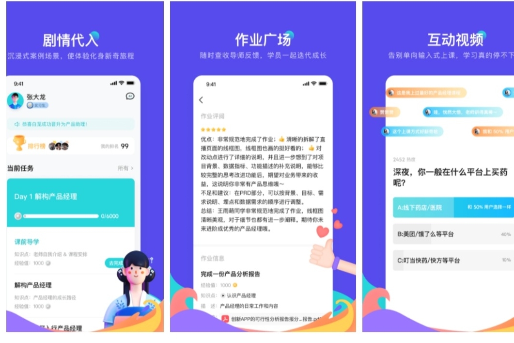 据了解,该产品依靠剧情模式解锁学习进度,类似于闯关游戏,每达到一个等级,用户会获得更高阶的知识内容。 此外,该App提供作业服务,每学完一个阶段的知识后,用户会进行相关的作业,作业完成并提交后,会有专门的专业导师进行反馈,帮助用户在实践中夯实知识体系。
