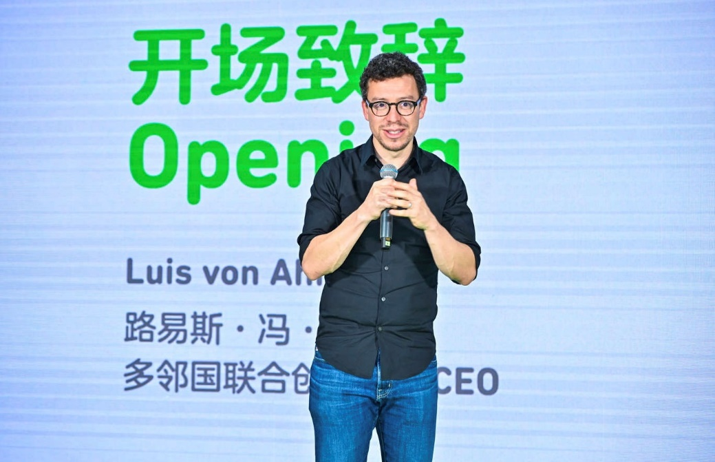 (多邻国开放日现场,多邻国联合创始人兼CEO 路易斯·冯·安 发言)