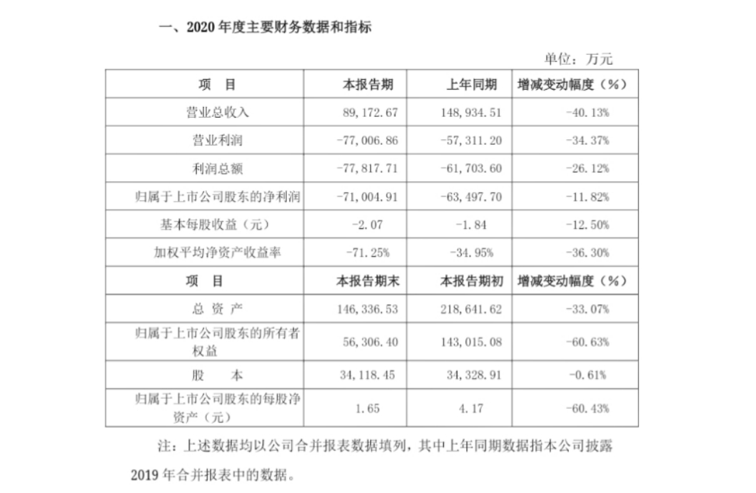 快报中显示,报告期内的营业利润为-7.7亿元,公司营业利润同比下降主要由于职业教育板块经营业绩亏损以及教育板块计提大额商誉减值所致。具体来看,尽管开元教育在2020年大力发展在线教育,但受到在线教育客单价较低及疫情推迟线下开课的影响,其在2020年度的整体营业收入同比大幅减少,导致公司2020年度经营业绩出现大额亏损。