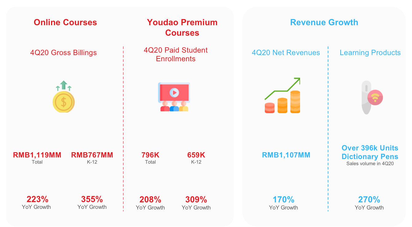 总体来说,周枫提到,加强教研和师资团队仍然是重点。在第四季度,网易有道又增加了42名主讲老师,总数达到214名。到2020年12月,网易有道共有3786名训练有素的辅导老师。