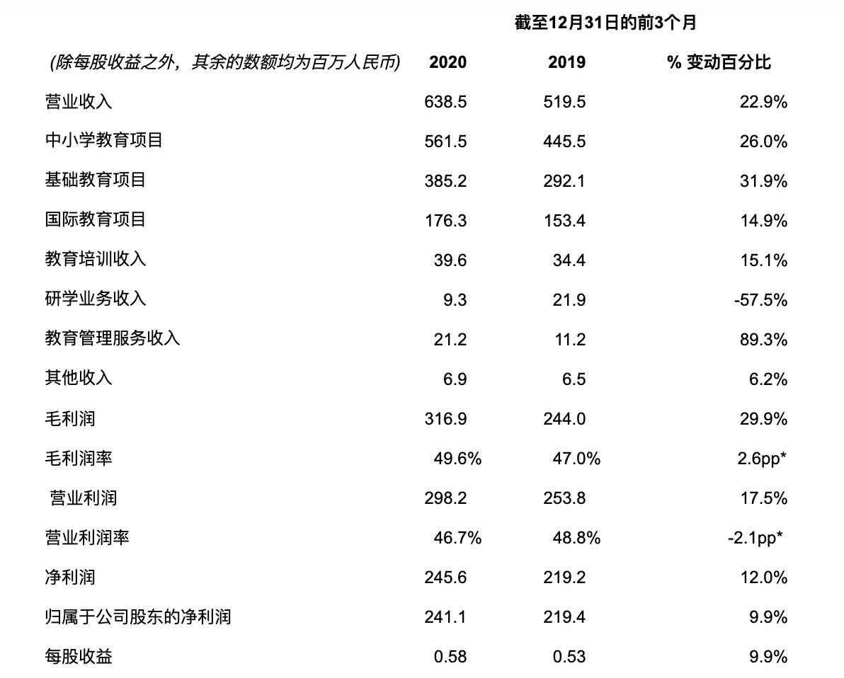 · 截至2020年12月31日,公司有13所自主举办学校和28所运营管理学校,共计41所学校,总在校生人数达72,893名。公司自主举办学校的在校生人数为26,936名,同比增长14.0%。其中基础教育21,636名学生,同比增长15.4%,国际教育5,300名学生,同比增长8.7%。