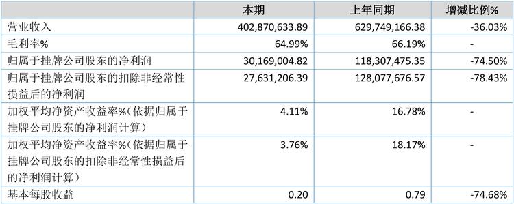 报告期内,亿童文教实现营业收入 4亿元,同比下降 36%,主要系受疫情影响,幼儿园推迟开学,图书材料和玩教具的采购需求减少所致;实现归属挂牌公司股东的净利润 3016.9万元,同比下降 74.5%,主要系受疫情影响,营业收入减少,固定支出并未明显减少,导致净利润出现大幅下滑;报告期末,亿童文教总资产 8.24亿元,同比下降 6.71%。