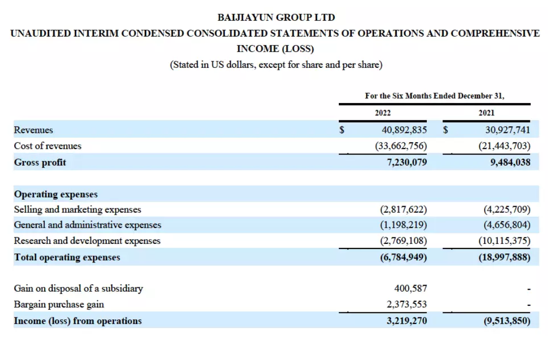 数据显示,百家云2023财年上半年总经营费用为678万美元,较上一财年的1900万美元降低了近七成。