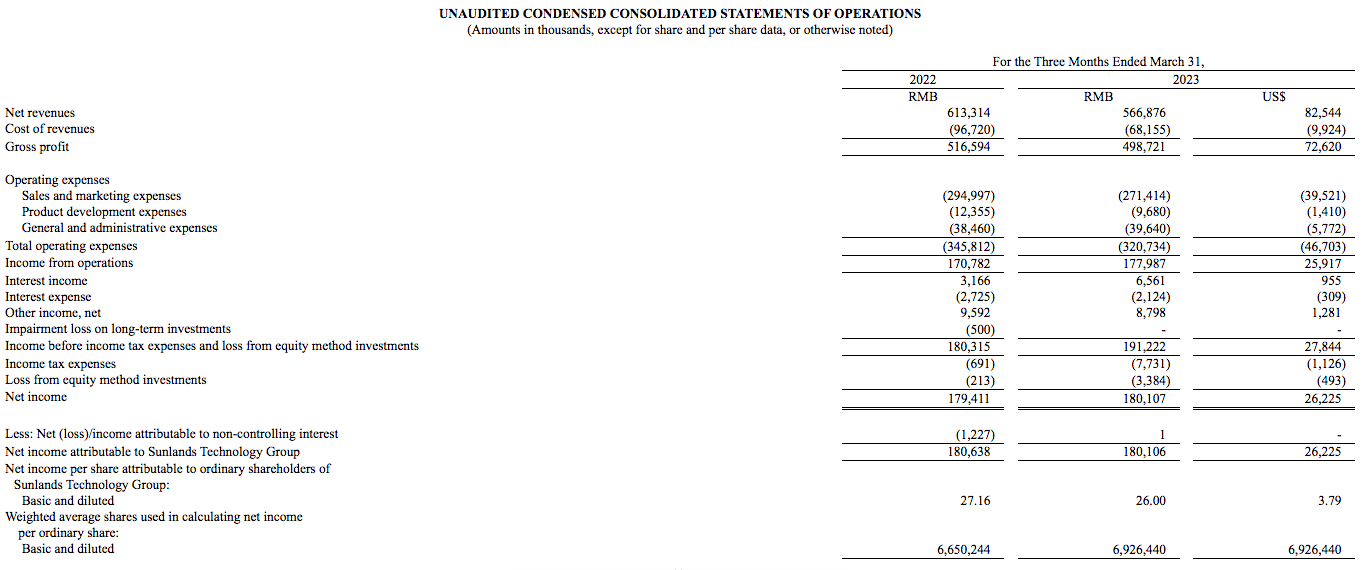 多知网5月26日消息,尚德机构(NYSE:STG)日前公布了截至2023年3月31日的2023财年第一季度未经审计的财务业绩。2023财年第一季度,尚德机构营收5.669亿元,同比下降7.6%;净利润1.801亿元,上年同期为1.794亿元,同比增长0.39%。