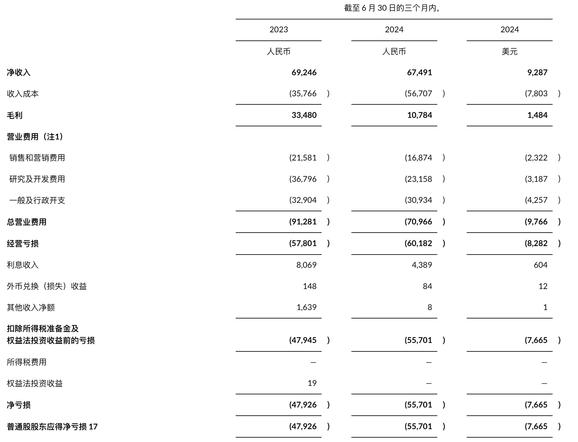 净亏损为 5570 万元(770 万美元),而 2023 年第二季度净亏损为 4790 万元。