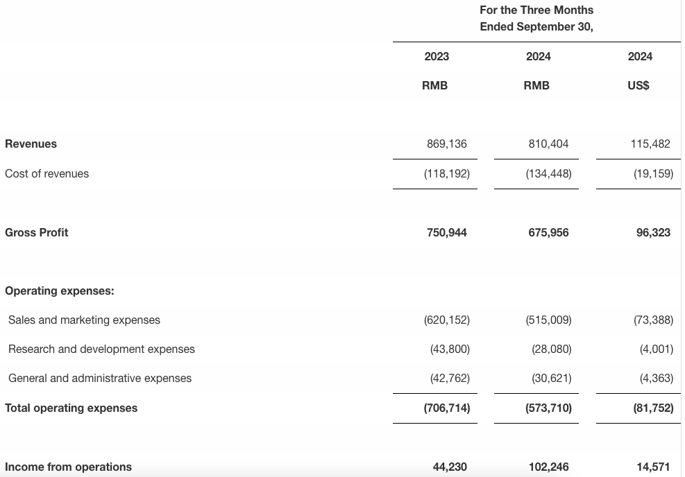 截至2024年9月30日,量子之歌注册用户总数约1.346亿,而截至2023年9月30日为1.033亿。