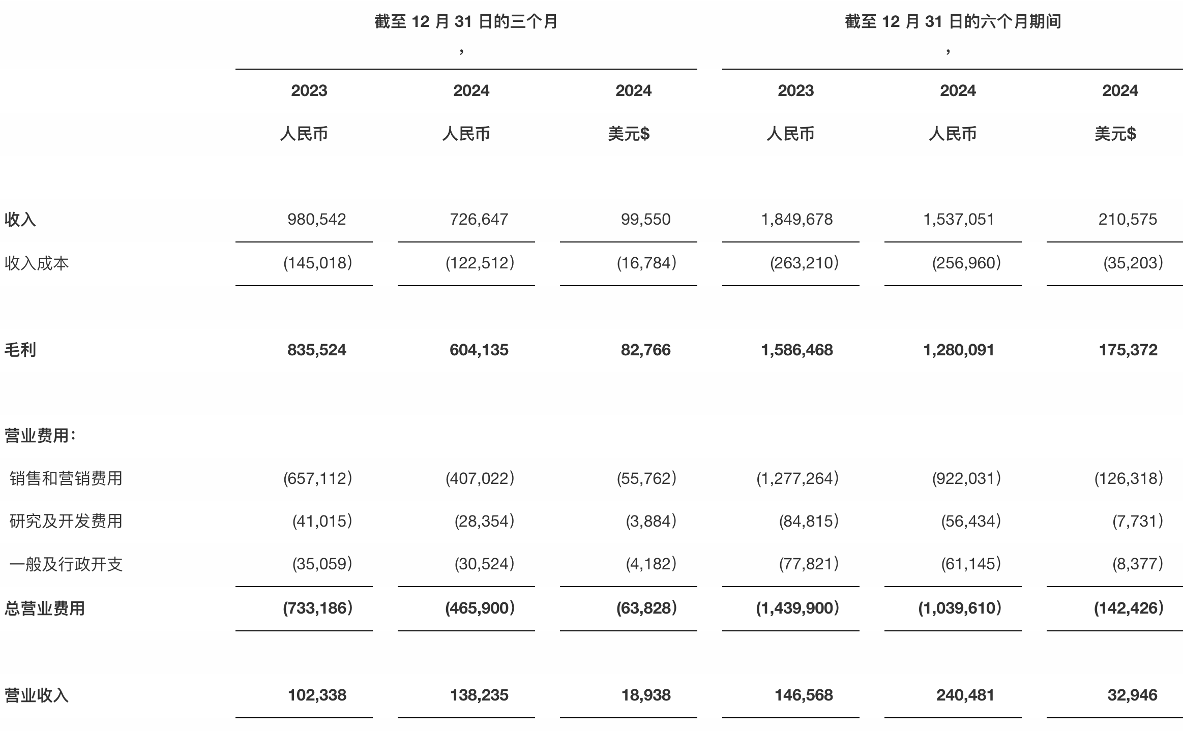 2025财年第二季度的收入为人民币7.266亿元(9,960万美元),而2024财年第二季度的收入为人民币9.805亿元。这一变化反映了公司从流量驱动型增长向高质量增长的转变,战略重点是银发经济市场。