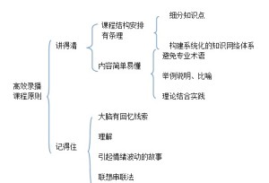 总之一门有效率的互联网录播课程不能仅满足于请两个名师把课程讲清楚,更重要的是制作出的课程要告诉学生如何记住,能让学生们在考场上一展身手,方能显互联网教育之高效。
