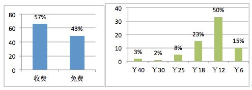 目前中国市场很多儿童教育类应用同时存在免费和收费两个版本,收费的版本大多比免费版本的下载量低。在所调查的样本中,儿童收费软件和免费软件比例如下图
