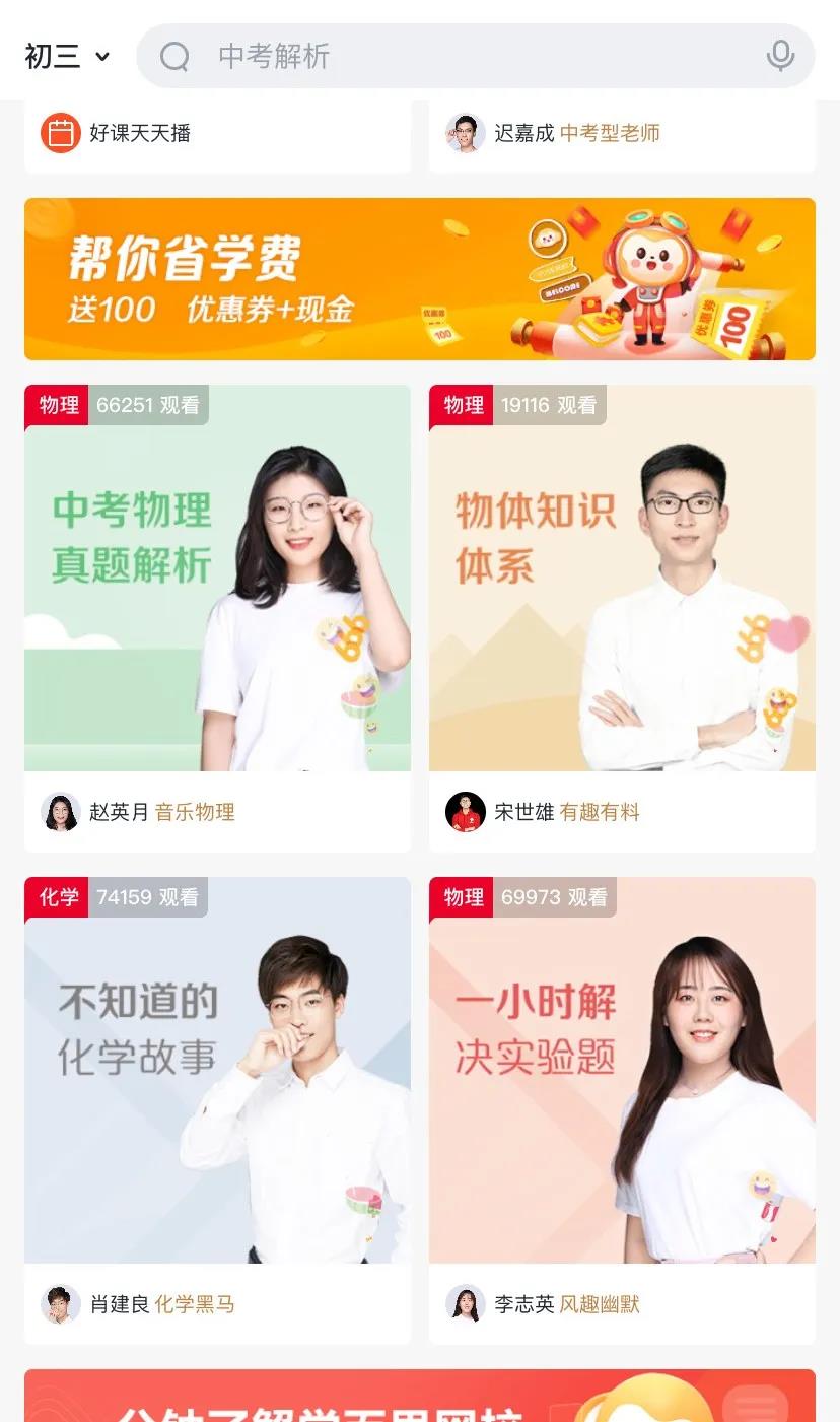 不久之前,学而思网校进行了APP的新一轮迭代。从界面呈现来看,各个主讲老师都像海报一样列在APP的主界面之上,并拥有自己的关注和推荐体系。点击每个老师的头像,可以添加关注,成为其粉丝团一员。