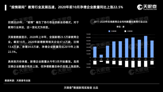 “疫情期间”教育行业发展迅速,2020年前10月净增企业数量同比上涨22.5%