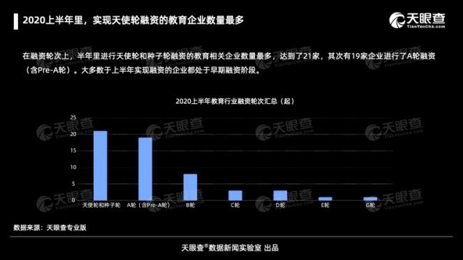 2020上半年里,实现天使轮融资的教育企业数量最多