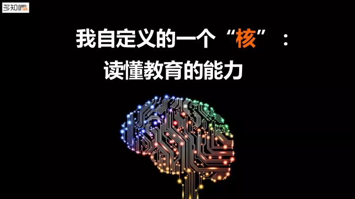 对于教育培训行业来讲,我们要想一想我们的硬核到底是什么?对于我们每一个企业来讲,先迈出一小步,有一个小目标,先有一个核,再说硬核的事。比如说给自己定义,我们应该有什么样的核?至少我们应该有读懂教育的能力。