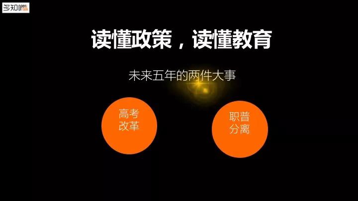 第三个是读懂政策,从更宏观的角度现在政策是两项政策:一项政策叫做高考改革,一项政策叫做职普分离。职普分离是行政上非常大的政策。