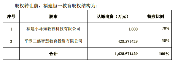 股权转让后,小马知教育持有福建恒一教育100%股权。