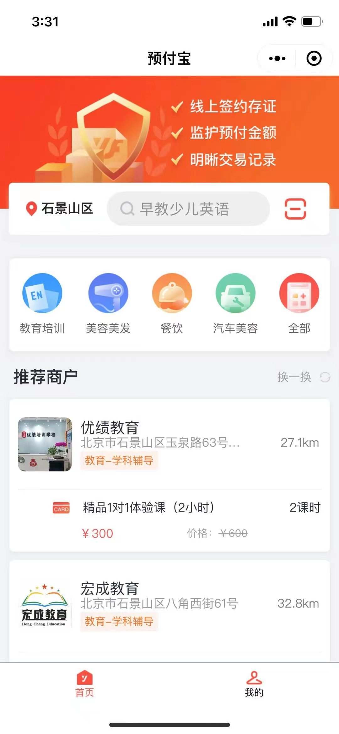目前,“朝阳预存宝”微信小程序,有“消费者端”和“商家端”两个入口,里面的商家默认按照入驻时间及企业信用进行排序,入驻时间越早排名越靠前,同时也提供按距离排序。