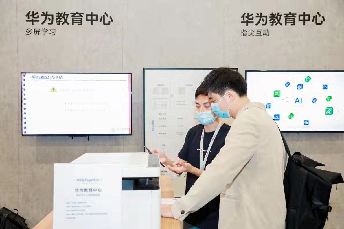 聚焦智慧教育话题,今年,在华为开发者大会上,华为教育中心开展了以「共赢智慧教育未来」为题的技术论坛,以及产品体验展区。