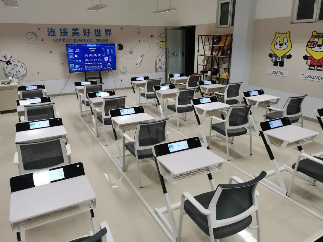第一,把学生的学习终端和课桌进行了一个整合固化。水獭智创认为,Pad虽然来到了教学场景,但它仍属于移动终端,在教室里,学生可以把它放在任意位置使用,另一方面,它可以在其他场景下使用,包括课后。这不利于教学的开展和学生的专注。