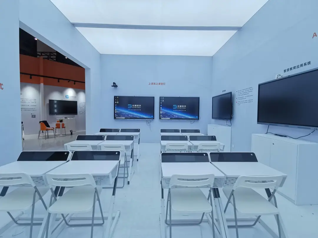 在2021年成都中国教育装备展上,水獭智创与阿里云合作产出的数字教室解决方案吸引了来往参展者的目光,他们以一张桌子和一块不可移动的屏幕为基础,对智慧教室做出了自己的诠释。