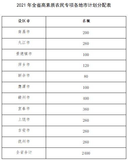 多知网11月11日消息,近日江西省农业农村厅日前印发《关于组织做好2021年全省高职扩招高素质农民专项报考工作的通知》(以下简称通知)。通知明确,今年高素质农民专项报考面向江西省招收高素质农民2400人,并免予收取学费、书费和住宿费。