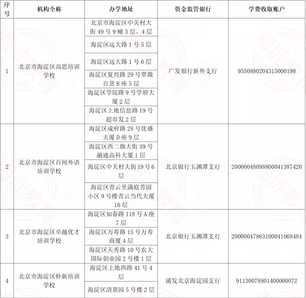 此前,海淀区“双减”工作专班办公室先后于今年1月、2月17日分别公示19家、26家学科类校外培训机构名单。