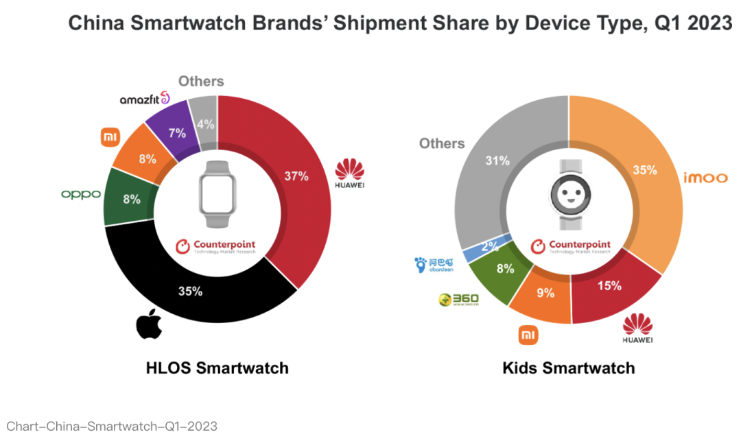 研究助理Alicia Gong在谈及市场趋势时表示:“尽管第一季度智能手表的整体需求下降,但HLOS智能手表的需求份额上升。这些高端手表为用户提供更多定制化服务和独立性。虽然小天才(imoo)仍以35%的市场份额主导儿童智能手表市场,但在儿童市场低迷的情况下,其手表出货量年同比持平。”