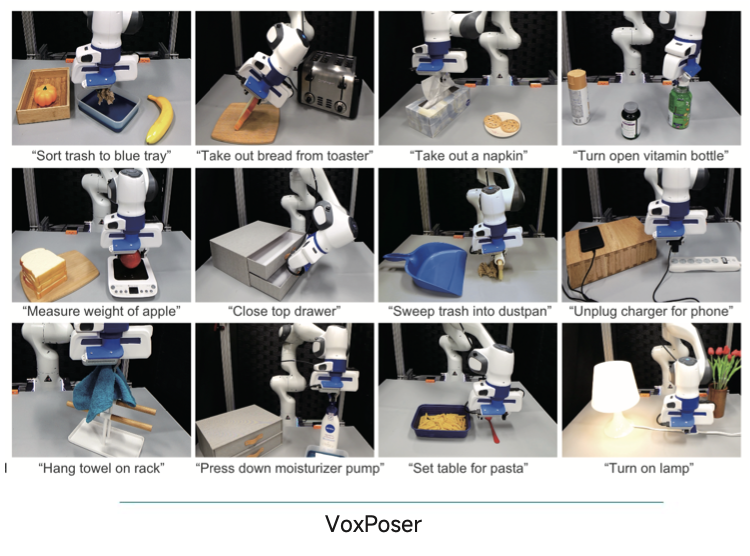 2023年,具身智能领域的几项关键性技术都取得了突破性进展。6月,李飞飞团队发布了具身智能新成果VoxPoser,能从3D空间分析出目标和环境障碍,让真实世界中的机器人在未经培训的情况下直接执行任务。