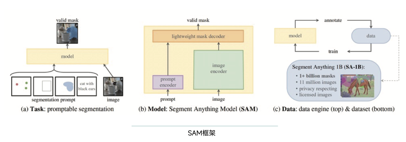 在SAM出现之前,我们所能看到的其他图像分割模型,都是专有模型,良好性能在其他领域无法体现。SAM的最大贡献即可以快速分割没见过的图像,将之前零散的图像分割模型统一。有CV从业者认为SAM的出现是计算机视觉领域进入「GPT时代」的原因。