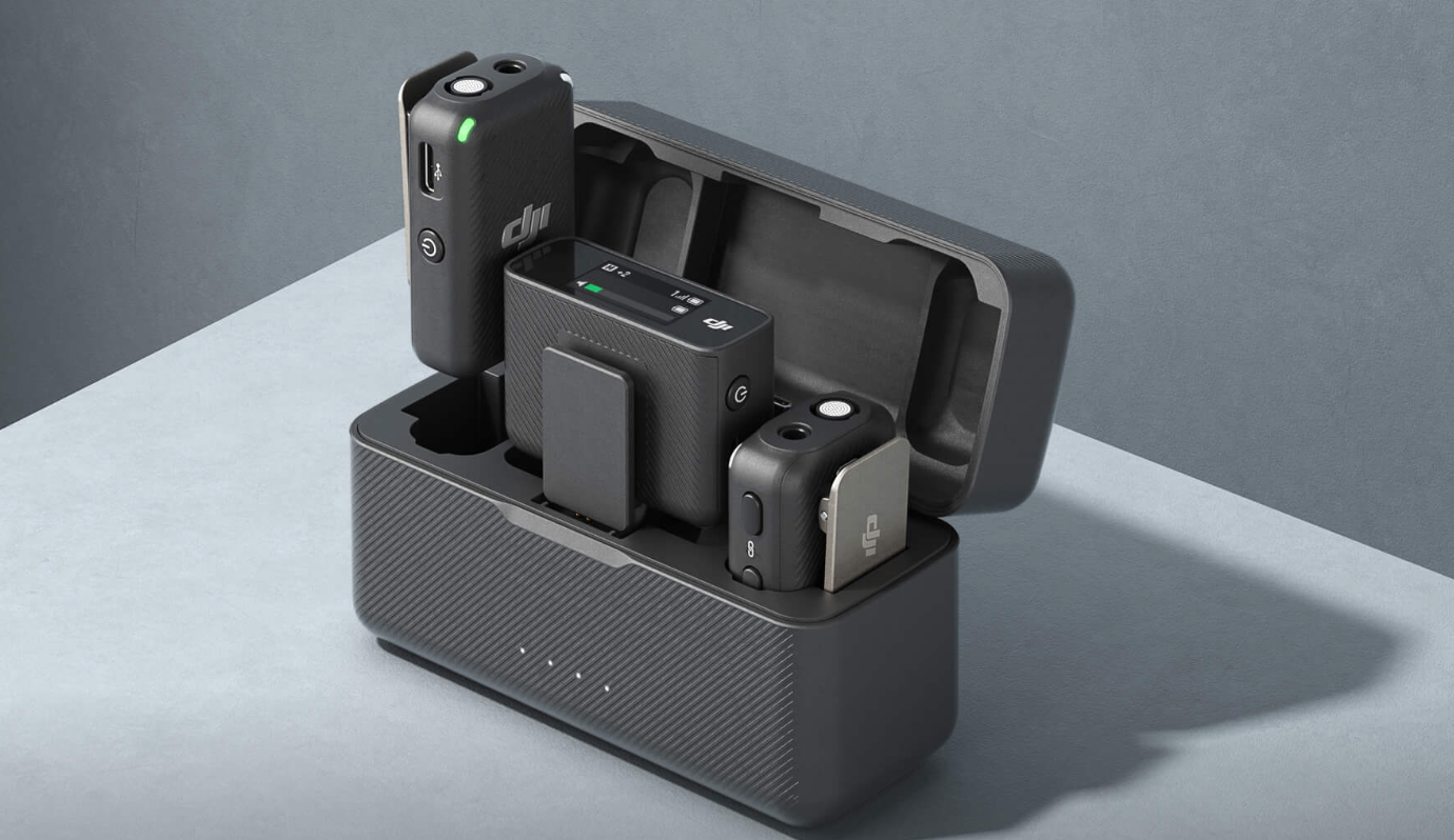 DJI Mic 2延续一体收纳设计,开盖即自动开机。充电盒开盖可自动配对接收器与发射器,并可实时为其充电。盒内配有USB-C 以及Lightning手机转接头,用户只需取出接收器插上拍摄设备,即可快速启动使用。发射器采用背夹式设计,配备磁吸配件可固定于衣物上。