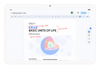 用户现在只需使用手指或手写笔即可从 Android 手机或平板电脑向Google Docs文档添加手写注释。通过多种标记工具(例如不同的笔颜色和荧光笔)可以快速灵活地审阅文档并提供反馈。