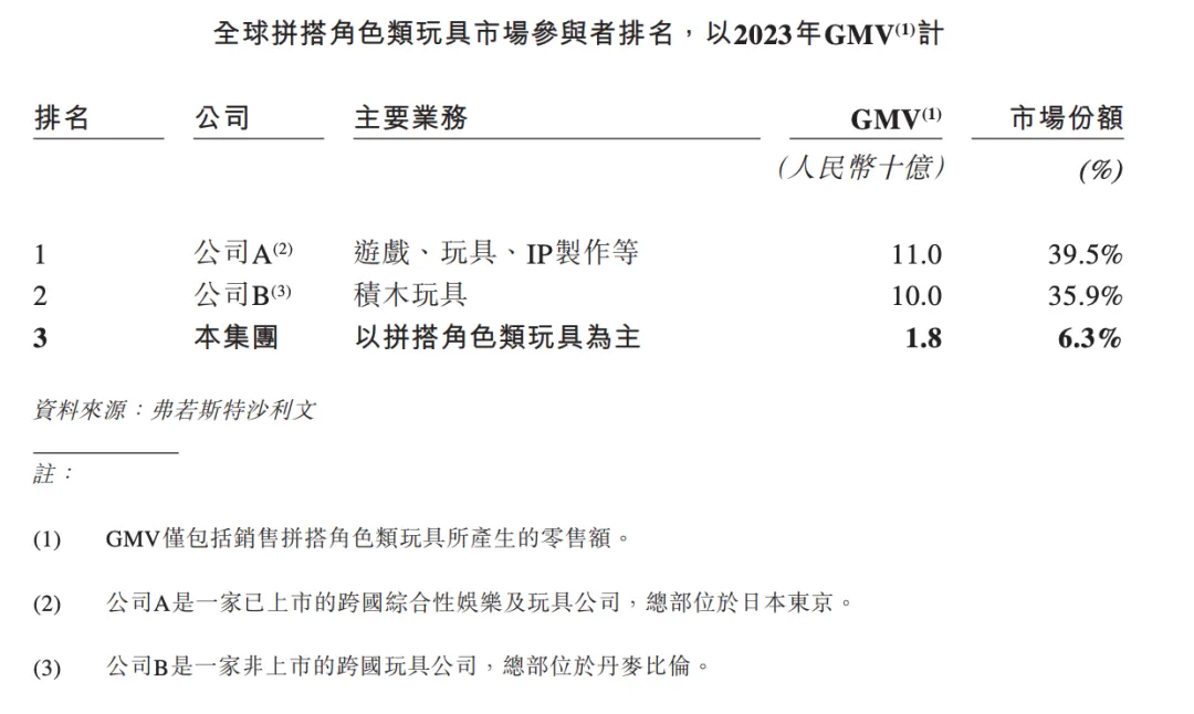 就中国市场而言,根据弗若斯特沙利文,布鲁可是中国最大、全球领先的拼搭角色类玩具企业。