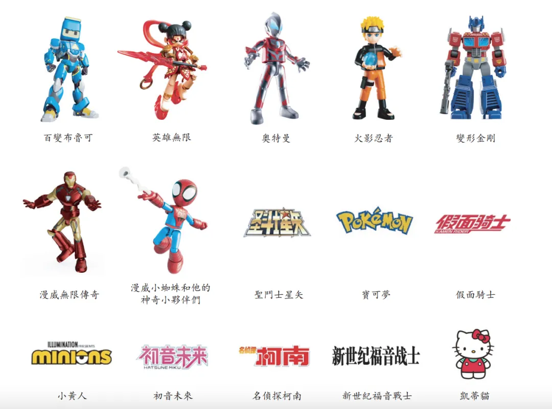 布鲁可产品的背后是IP能力。截至目前,布鲁可已成功推出2个自有IP,包括儿童益智类的百变布鲁可和中国传统文化主题的英雄无限。同时,布鲁可还已获得超过30个知名IP的授权,包括奥特曼、变形金刚、火影忍者、漫威无限传奇、漫威小蜘蛛和他的神奇小伙伴们、小黄人、宝可梦、假面骑士、名侦探柯南、初音未来、圣斗士星矢、新世纪福音战士、凯蒂猫和芝麻街等。