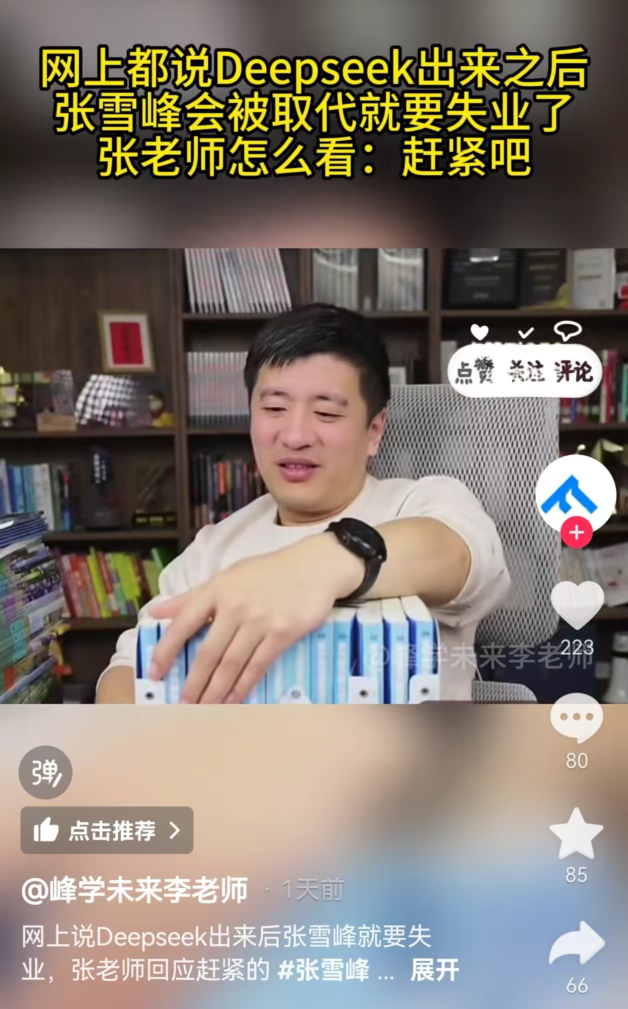 多知2月8日消息,随着DeepSeek的爆火,近日,“有了DeepSeek之后张雪峰就要失业了”的论断也随之出现。