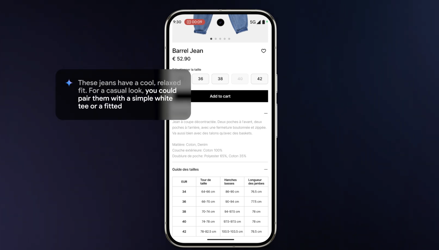 在巴塞罗那举行的 2025 年世界移动通信大会 (MWC) 上,谷歌展示了一项新的“屏幕共享”功能,该功能可让用户与 Gemini 分享手机屏幕上的内容并询问有关问题。例如,该公司播放了一段视频,视频中一位用户正在购买一条宽松牛仔裤,并询问 Gemini 哪些其他衣服可以与之搭配。