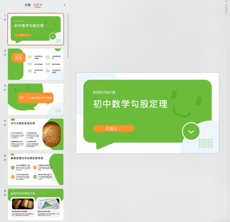 在做课件时,WPS AI能基于用户上传文档给出PPT的整体框架,然后选择所需要的风格,可以一键生成更贴合教师所需的PPT。
