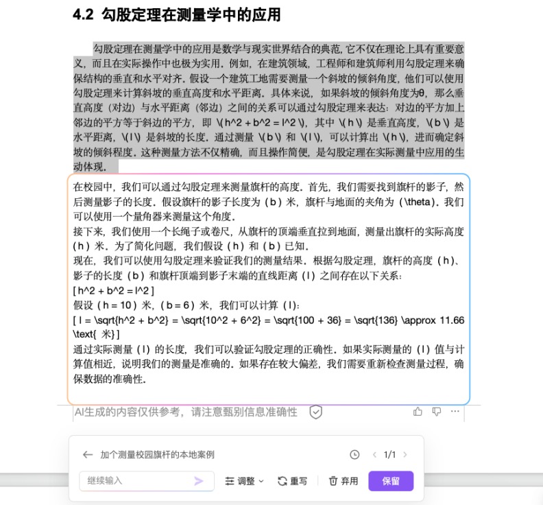WPS AI还有”测量校园旗杆的本地案例”,让基层教师有参考。