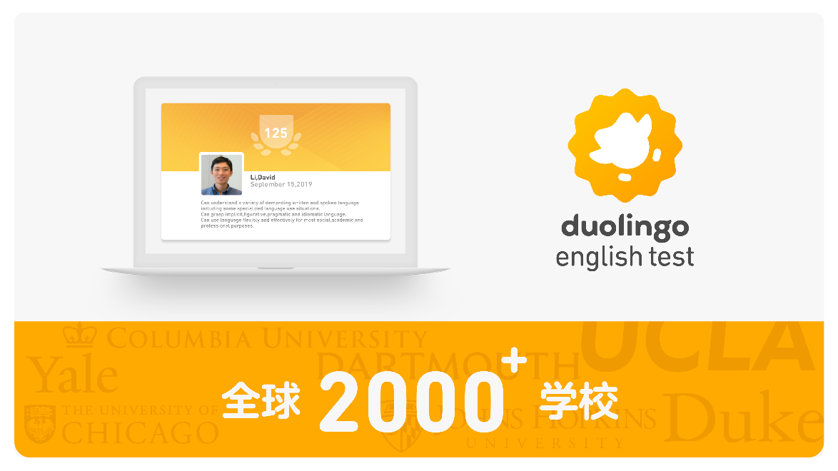 第二、目前,多邻国已经获得近2000所国外大学认可。这些大学在给学生发的邮件中供选择的语言成绩申请考试,其中就会提到DET。其中不乏耶鲁大学,纽约大学,杜克大学,伦敦政治经济大学,麻省理工大学,哥伦比亚大学等世界名校,目前接受大学的名单还在快速增加。