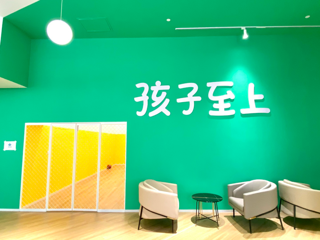 2020年12月1日,叽里呱啦上海总部的1300余名员工搬到占地一万平的5层专属办公楼里,在创始人许可欣朋友圈当天发布的九张照片里,一张绿色背景墙写着的“孩子至上”,被放在最中间的位置。