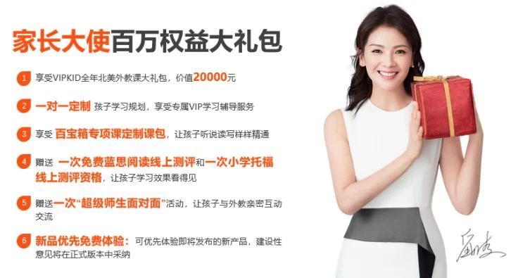 并在直播中正式宣布启动“家长大使”招募活动,自3月17日起,家长可通过VIPKID官方微信报名参加。活动中提到,将为家长提供价值20000元的北美外教课礼包;赠送线上测评资格;新品免费体验等权益。
