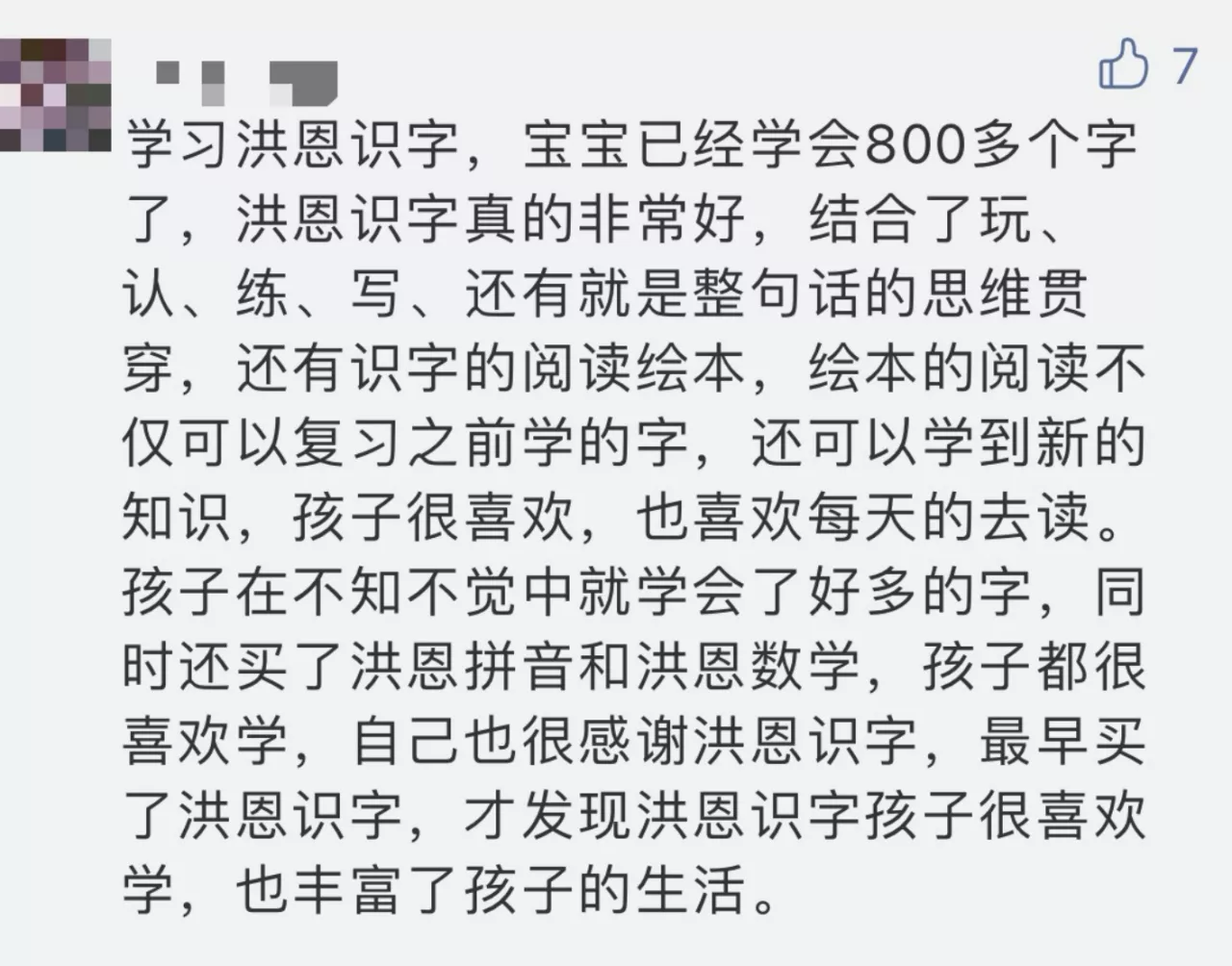 有《洪恩识字》的用户表示,多变的互动学习模式让小朋友告别枯燥的学习,孩子的接受度很高,在不知不觉中学会了很多字,丰富了孩子的生活。
