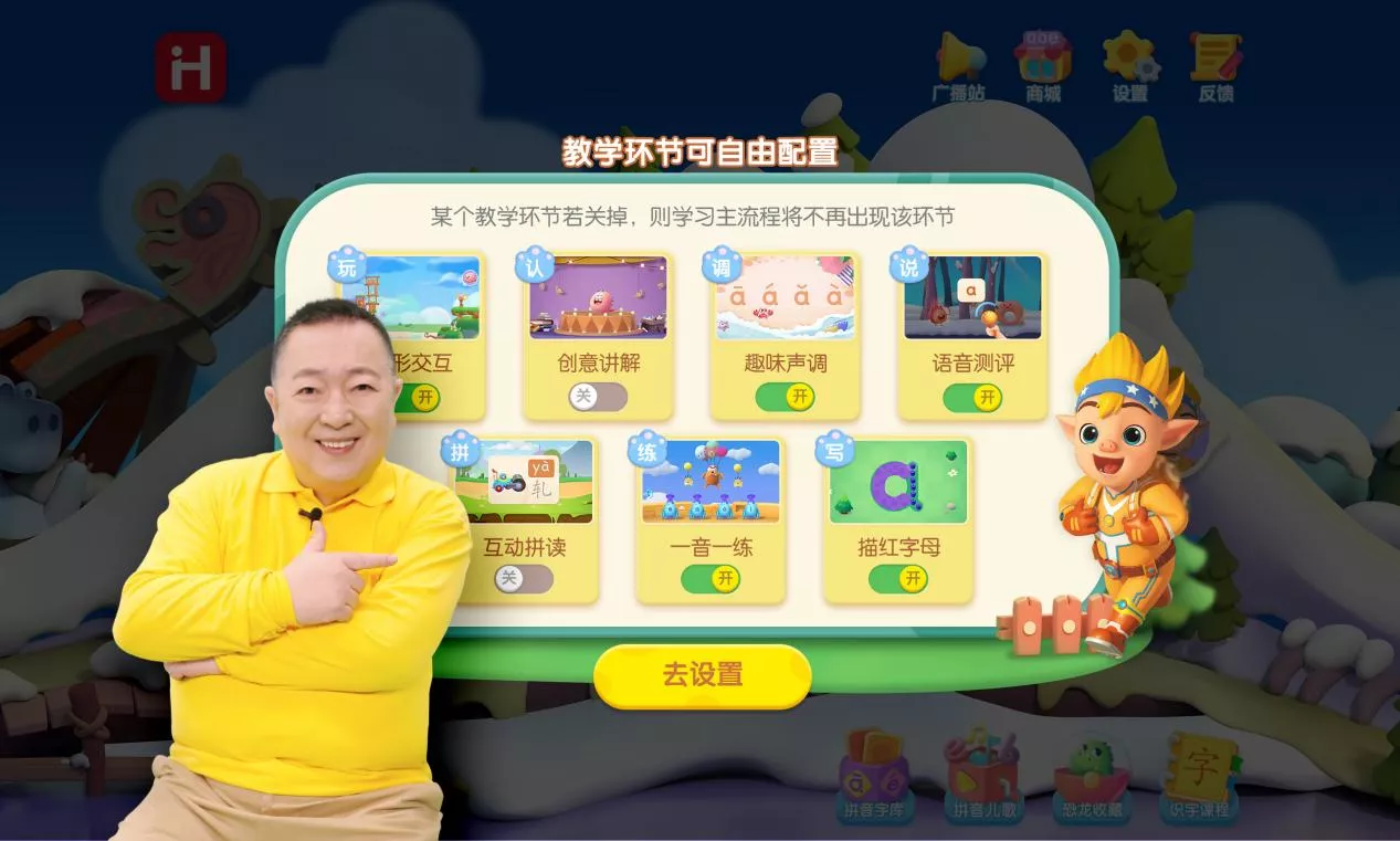 对此,《洪恩识字》App上线了自由配置教学环节的功能,将各个环节设置成课独立操作的不同模块,家长可以根据不同孩子的实际情况,选择开启或者关闭某个教学环节,关闭后这一环节将不再出现在主学习流程中,实现更聪明更高效的个性化学习。