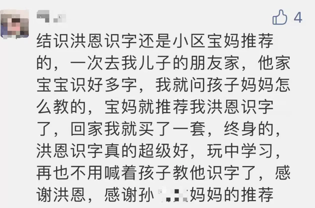 有《洪恩识字》的用户家长表示,以“玩”的形式学习,能够很好的培养小朋友学习的兴趣,并且专注于学习识字,做到“玩得尽兴,学得开心”。