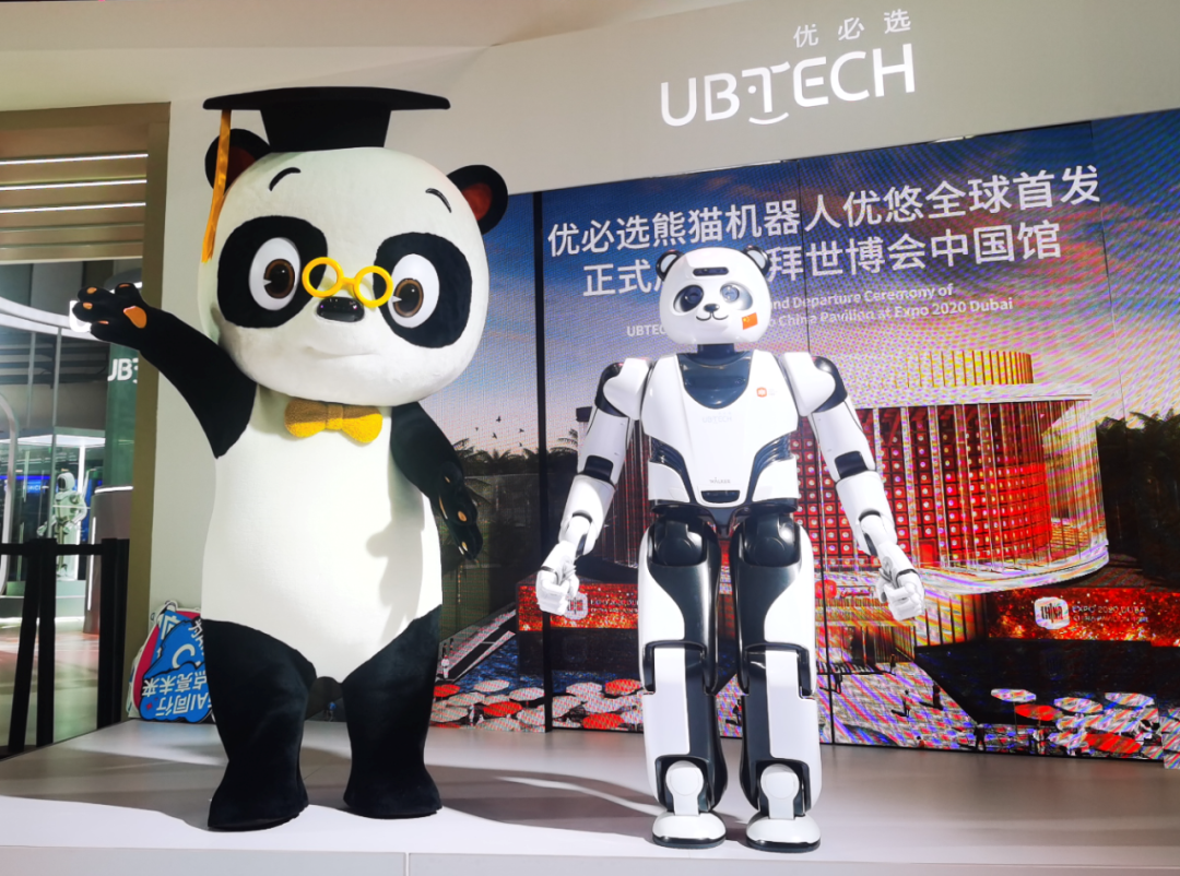优悠以大熊猫形象为原型,在大型仿人服务机器人WalkerX的基础上,为迪拜世博会中国馆定制,并于2021年世界机器人大会全球首发。优悠通过丰富灵动的表情、拟人化的多模态设计、流动的身体形态,表达了创新、合作、进取、开放的精神。届时,优悠将作为中国馆的和平友好使者,代表中国原创前沿科技向世界传递AI。